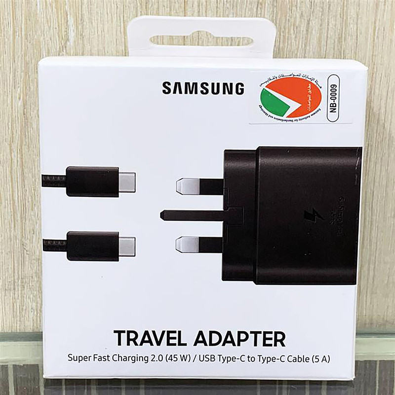 شارژر اصلی سامسونگ سوپر فست 45 وات مدل Travel Adapter Super Fast 45W Type-C (EP-TA845) شارژر 100 درصد اصلی و اورجینال سامسونگ میباشد. این محصول ساخت ویتنام میباشد. شارژر دیواری(EP-TA845) محصول شرکت سامسونگ است. این شارژر دیواری دارای فناوری PD 3.0 است که با استفاده از آن می توانید دستگاه خود را با سرعت بیشتر و با توان 45 وات شارژ کنید. شدت جریان خروجی این شارژر برابر با 5 آمپر است که می توان از آن برای شارژ کردن تبلت هم استفاده کنید. برای این شارژر از چیپ هوشمندی استفاده شده تا با اتصال دستگاه به صورت خودکار جریان مناسب را برای دستگاه تامین کند. درگاه خروجی این محصول هم از نوع USB-C است. البته همراه با این شارژر یک کابل تبدیل USB-C به USB-C به طول یک متر هم ارائه میشود. این شارژر سایر محصولات و موبایل های سری 2019 به بالا و گوشی هایی که توانایی شارژ سوپرفست را دارند پشتیبانی می کند.