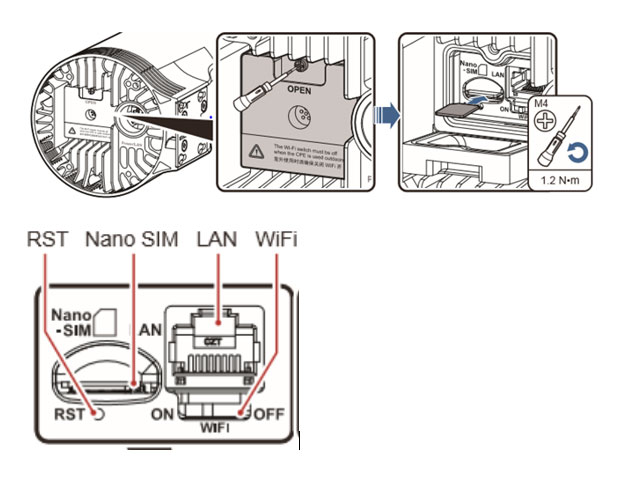 این مودم یک شیار سیمکارت نانو، یک درگاه اترنت LAN و یک درگاه ترکیبی LAN/Power دارد. یک کلید وایفای نیز روی این دستگاه تعبیه شده است تا بتوانید وقتی نیازی به وایفای مودم روتر N5368MAX ندارید؛ آن را خاموش کنید.
