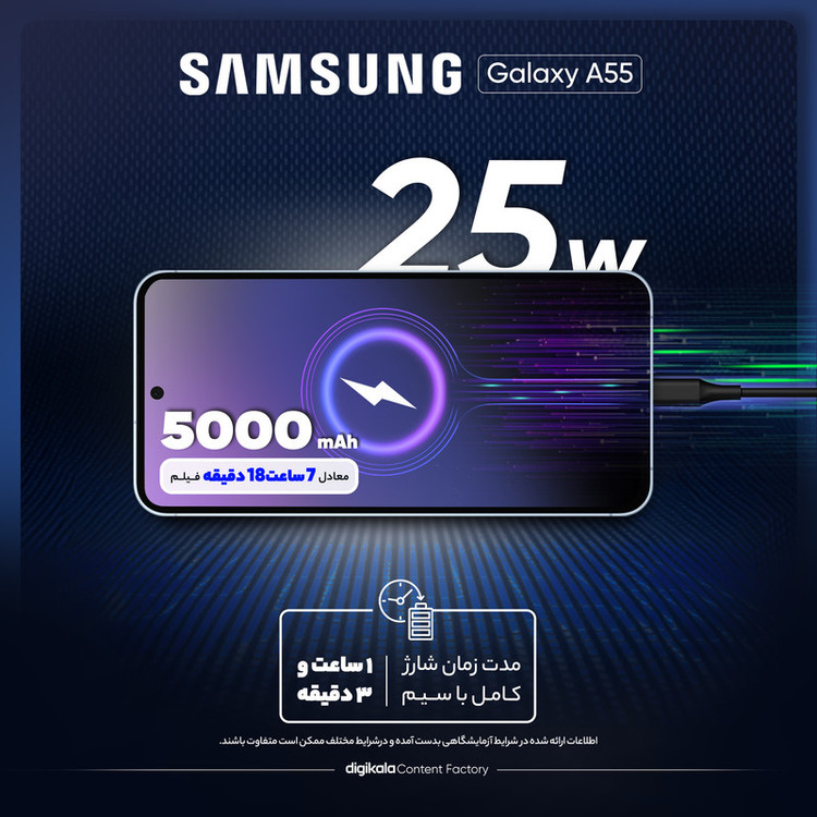 ❓ ۴. باتری A55 چقدر دوام میآورد؟